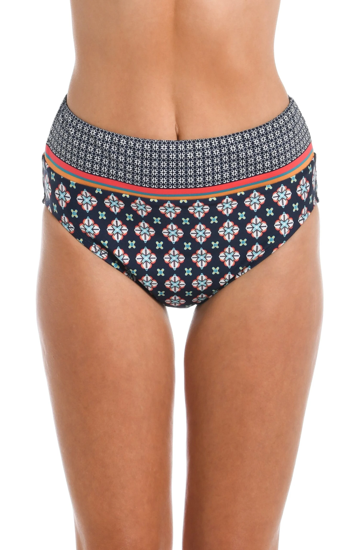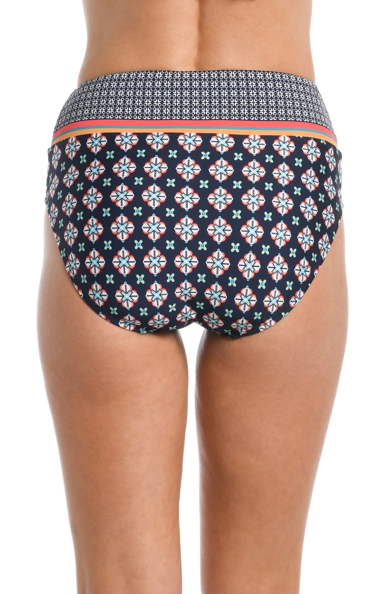 The Alexandria Tile High Waist Spliced Pant with Powernet in the color midnight is the perfect bathing suit bottom to wear this summer. The high waisted design, along with the print, color, and powernet lining ensure great support and comfort along with figure-flattering style.