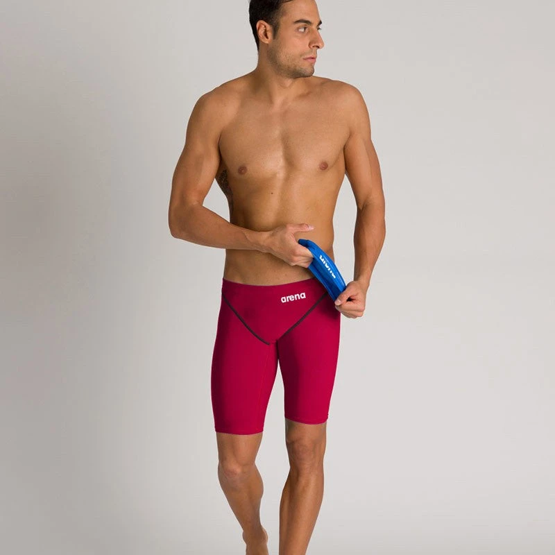 Get ready for Powerskin ST 2.0. These racing jammers for men have better resilience, better compression and better stretch. Arena have revamped their tech swimsuit for racers and swimmers of all levels with three high-tech knit fabrics and a durable lining for optimal muscle support and freedom of movement. All seams are flatlock for a snug fit against the body, and the new ergonomic seam placement improves body and leg position in the water. Enhanced support and comfort plus a sleek finish make Arena’s newest Powerskin ST a high performance swimsuit with exceptional hydrodynamics. This FINA-approved design is a comprehensive racing and training solution.