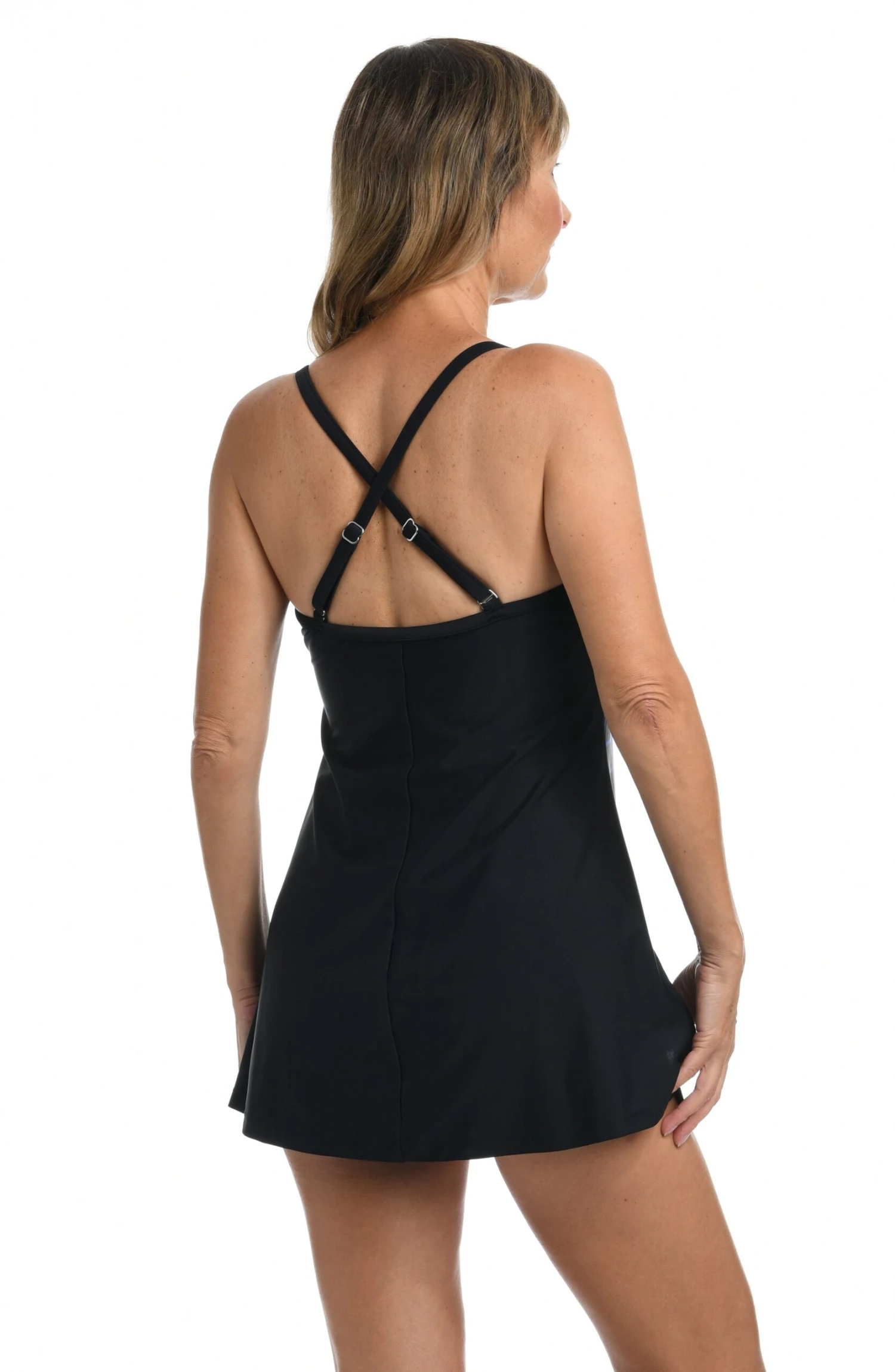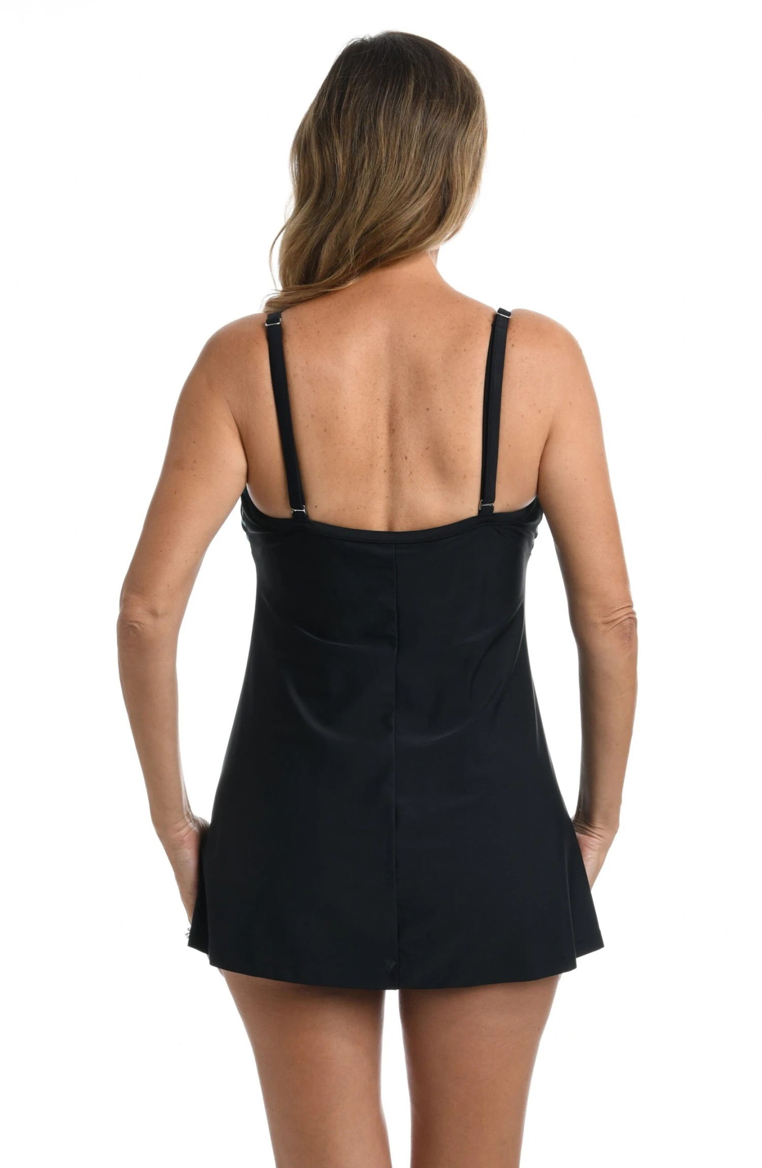 This scoop neck swim dress by Maxine of Hollywood is the perfect vacation item. Slits at the skirted hem work with flattering built-in tummy toning and molded cup coverage. Adjustable straps complete the support. Part of the Maxine Movement collection, this suit delivers a higher level of chlorine resistance, shape retention and comfortable compression for a sleek silhouette.