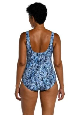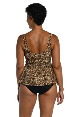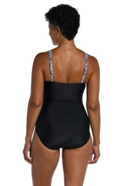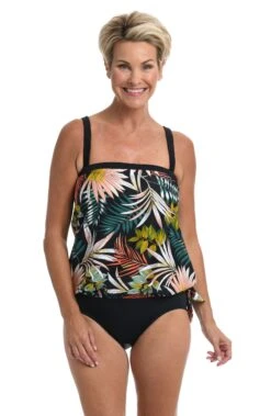 An allover pattern of swaying palm fronds will instantly put you in an island state of mind. The loose-fitting blouson style is perfect for making worry spots disappear, while the side-tie detail adds a flirty touch. Simply remove the straps for a bandeau and eliminate those tan lines in the process.